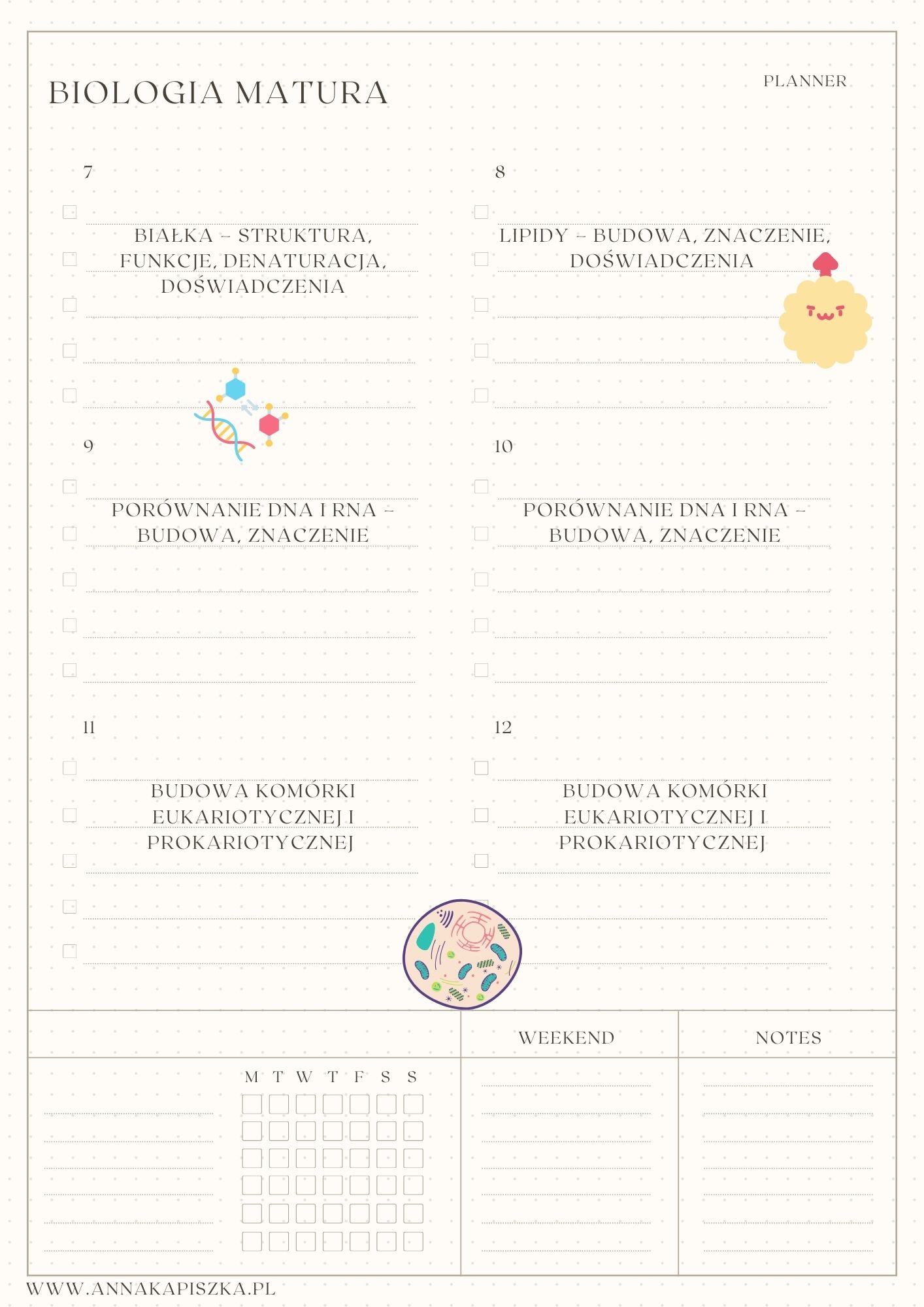 DARMOWY PLANER MATURALNY BIOLOGIA